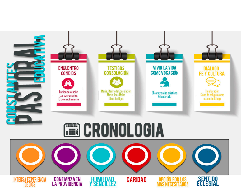 El plan de pastoral educativa de Consolación Fundación Educativa pretende ser el recurso que como decía el Papa Francisco dinamice, y promueva el crecimiento humano, espiritual y carismático de toda la comunidad educativa. Santa Mª Rosa Molas, fundadora de las Hnas. de Ntra. Sra. de la Consolación, desde bien pronto comenzó a entregarse al servicio de los pobres, niños, jóvenes, “se esforzó porque los niños y los jóvenes conocieran a Jesús y recibieran una formación adecuada que les ayudara a crecer como personas. Para ello creó escuelas y colegios”.